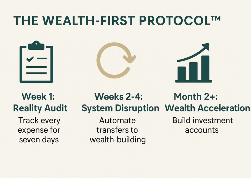 Weeks 2–4: System Disruption – “Automation before temptation” — automate direct payments to wealth-building activities before your brain gets in the way.